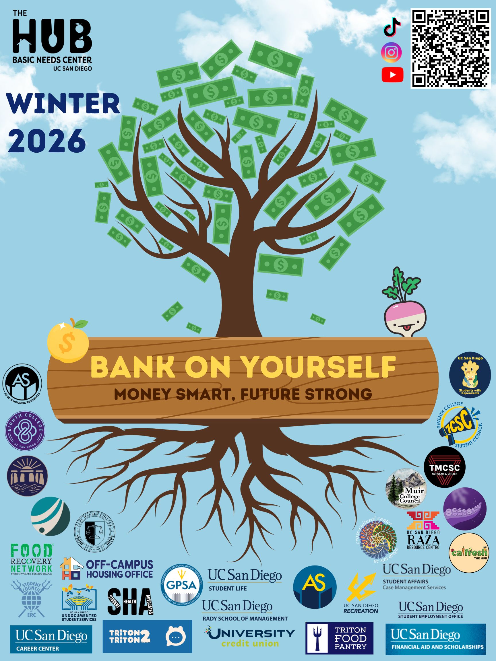 At Basic Needs, we recognize that financial hardships tend to be an underlying factor to accessing food or housing. Just like your education at UCSD is an investment, you need to invest in yourself to ensure you get your financial needs met. We believe it is your basic human right to have access to information that supports your financial wellness journey!